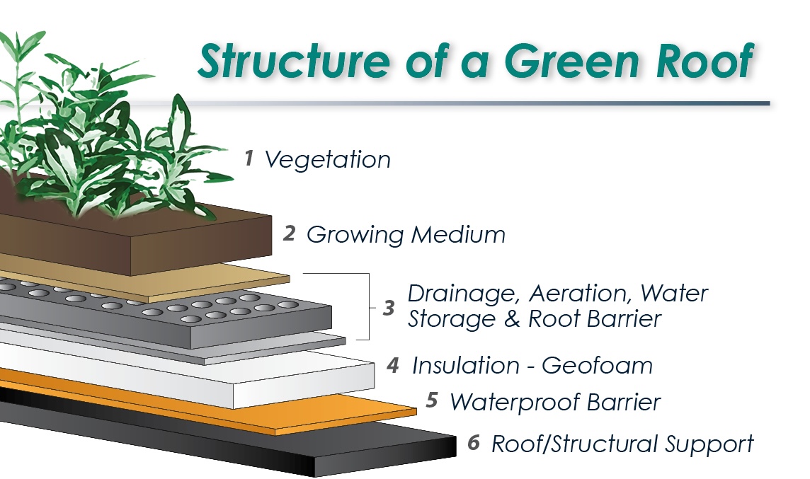 Growing awareness and concern for our environment have increased the interest and applications of green roofs. Geofoam is the ideal insulation for green roof construction. This environmentally sound roofing construction also offers long term cost savings. The overall environmental benefits include stormwater management and temperature regulation. For a consumer, a green roof offers insulation, which reduces energy costs and extends the life of the roof.